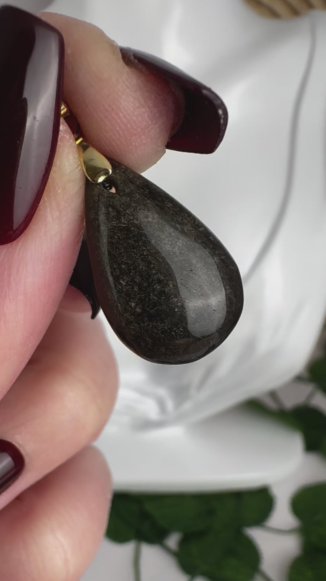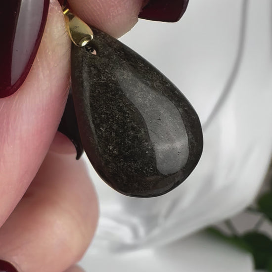 Pendentif Obsidienne Doré.